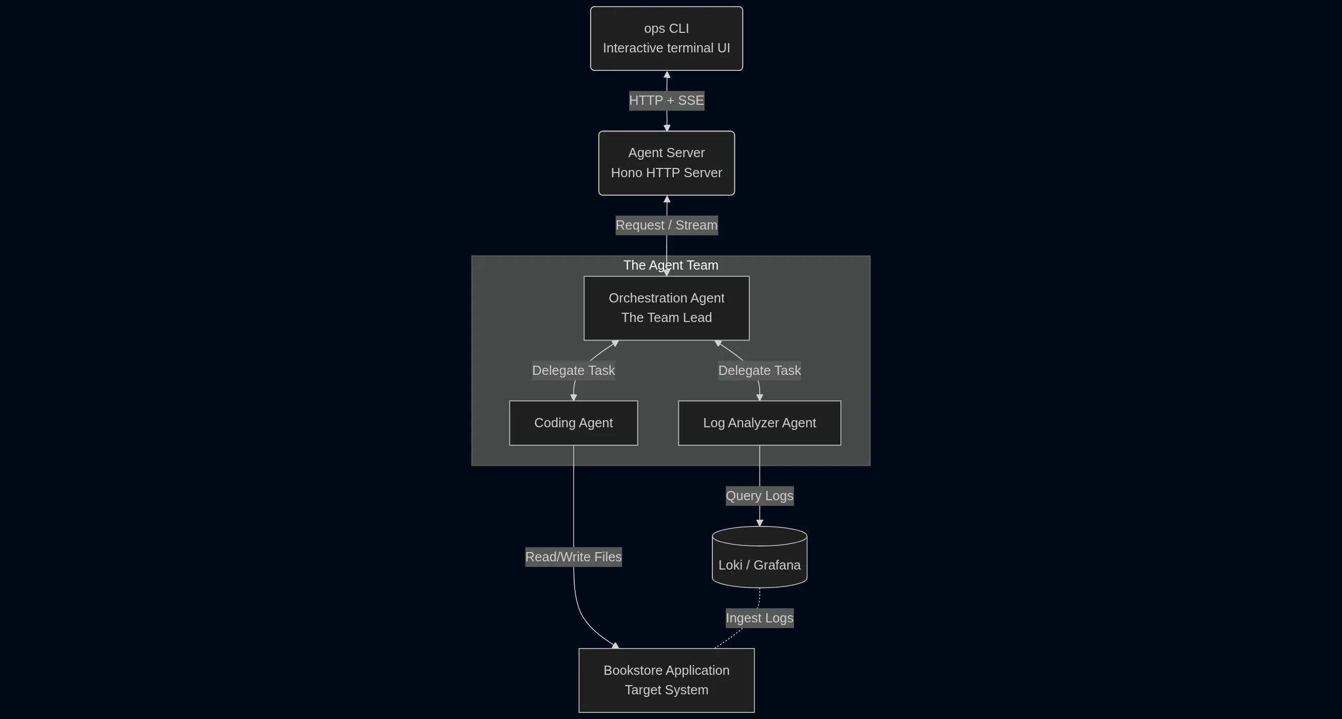 I intentionally avoided a monolithic ‘God Mode’ pattern. Instead, I adopted a Multi-Agent Architecture to enforce a strict separation of concerns. This modular approach isolates failure domains, making the system easier to debug, and prevents context window pollution by keeping prompt contexts focused on specific tasks. The backend runs as a standard HTTP service (using Hono), interacting with the operator through a rich CLI interface (using Ink).