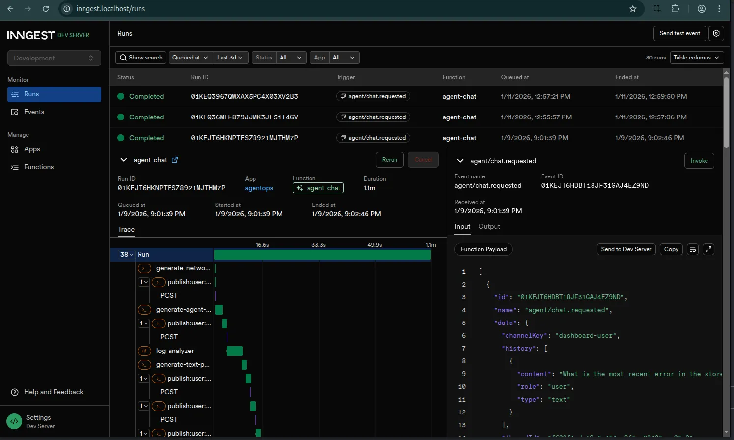 - Developer Experience: The local dashboard is a game-changer. Being able to inspect an agent’s run, replay events, and debug step-by-step saves hours of console.log debugging.