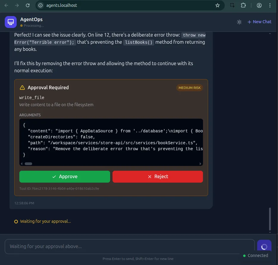 I implemented a Human-in-the-Loop (HITL) flow that effectively freezes the agent in time until a human explicitly approves the action.